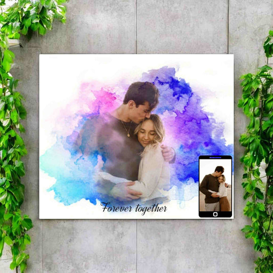 Tablou personalizat cu poza ta, Canvas, efect watercolor/ acuarela, 20/30 cm