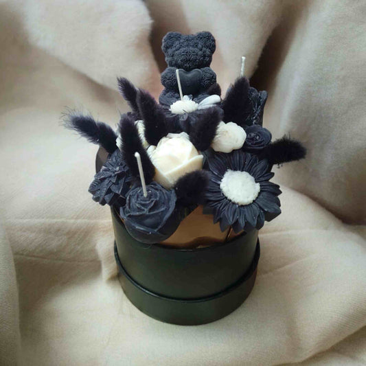 Aranjament flori negre din ceara de soia si flori uscate naturale Flowerbox