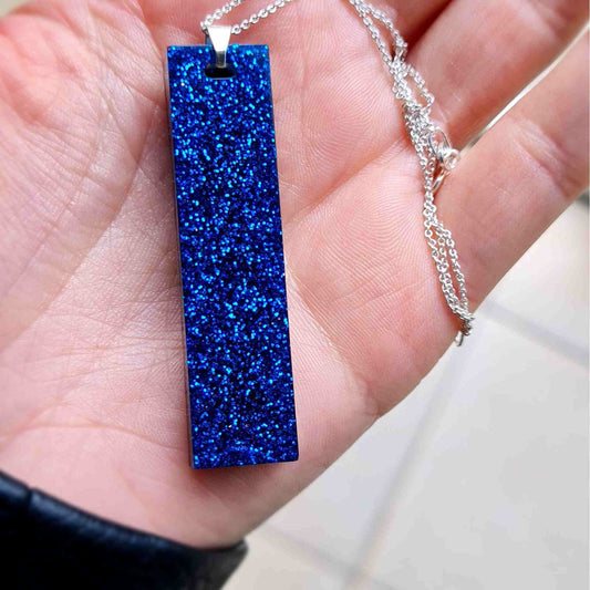 Pandantiv Rasina Epoxidica si Lantisor de Argint, Dreptunghiular Albastru cu Sclipici