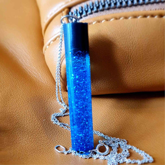 Pandantiv Rasina Epoxidica si Lantisor de Argint, Albastru cu Sclipici