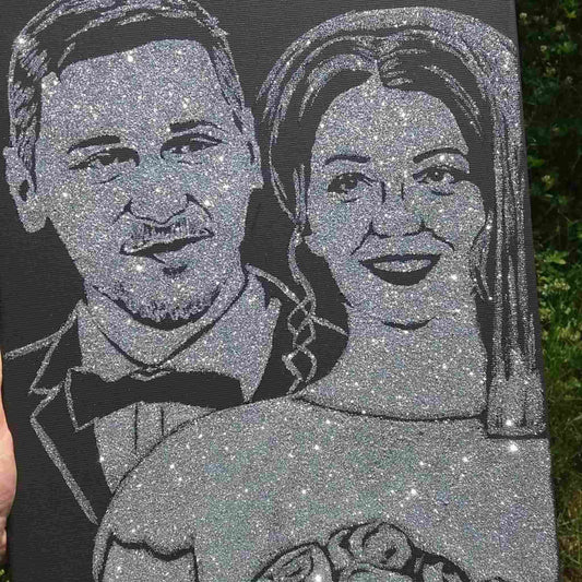 Portret cu sclipici cu poza ta, pictat manual 30/40 cm, 2 persoane