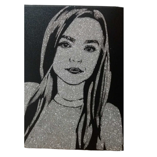 Portret cu sclipici cu poza ta, pictat manual, 50x70 cm, 1 persoana