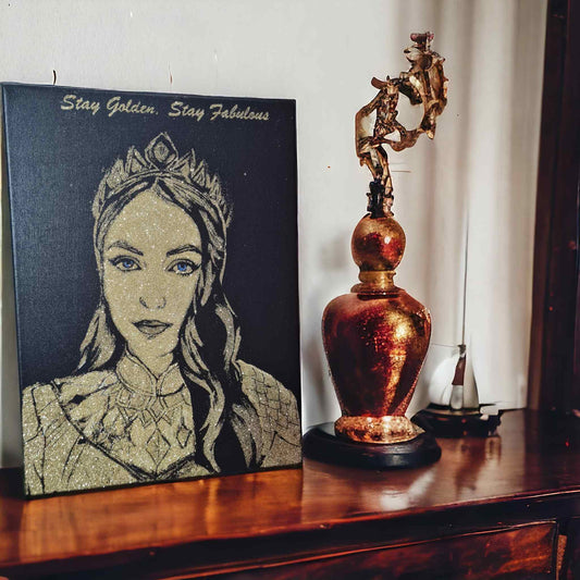 Portret cu sclipici auriu, pictat manual, 50x70 cm, 1 persoana