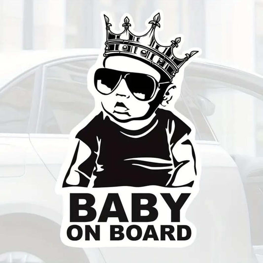Sticker Baby on board, baiat cu coroana, rezistent la jet de apa si zgarieturi, 20 cm