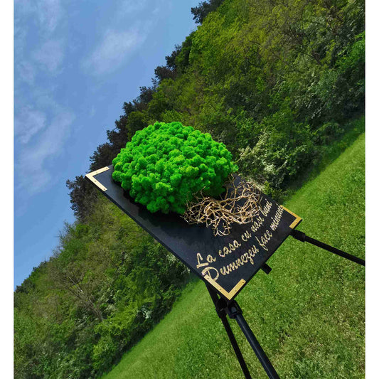 Tablou cu licheni naturali stabilizati, sarma rasucita manual si text personalizat/ Cadou pentru nasi, 3D, 55x45 cm