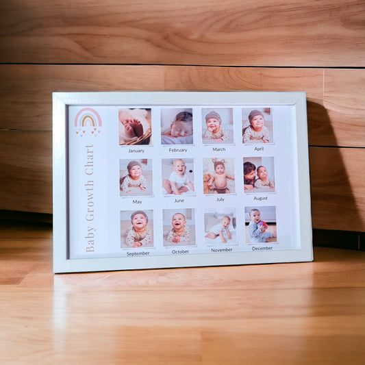 Tablou bebelus "Primele 12 luni" personalizate cu 12 poze, format A4