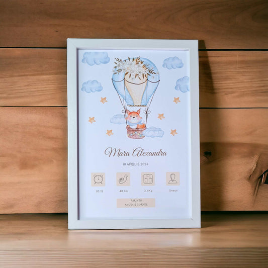 Tablou personalizat cu datele bebelusului la nastere